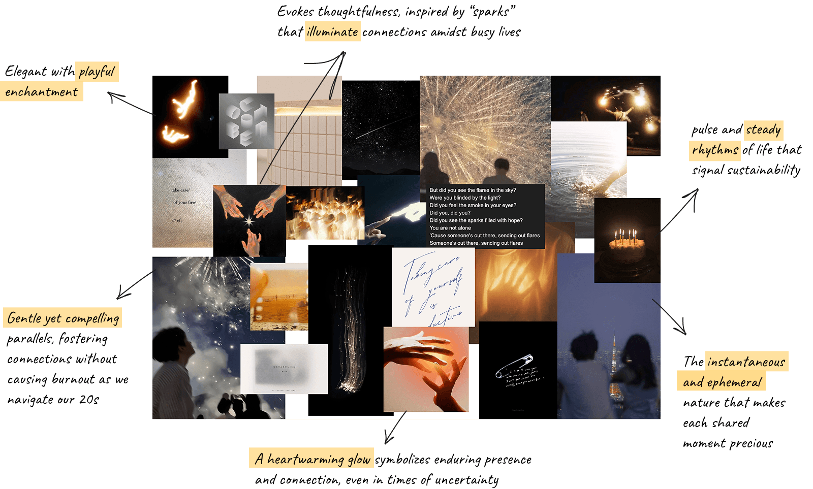 Completed as part of a Master's-level Fundamentals of UX course, this group project seeks to find a way to help young adults stoke the flames of meaningful connection, keeping them strong despite the challenges of this transformative decade.